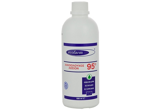 Το Οινόπνευμα Μετουσιωμένο 95° (Αλκοολούχος Λοσιόν) Ecofarm αποτελείται από μετουσιωμένη αιθυλική αλκοόλη γεωργικής προέλευσης 95°, νερό και γλυκερίνη.